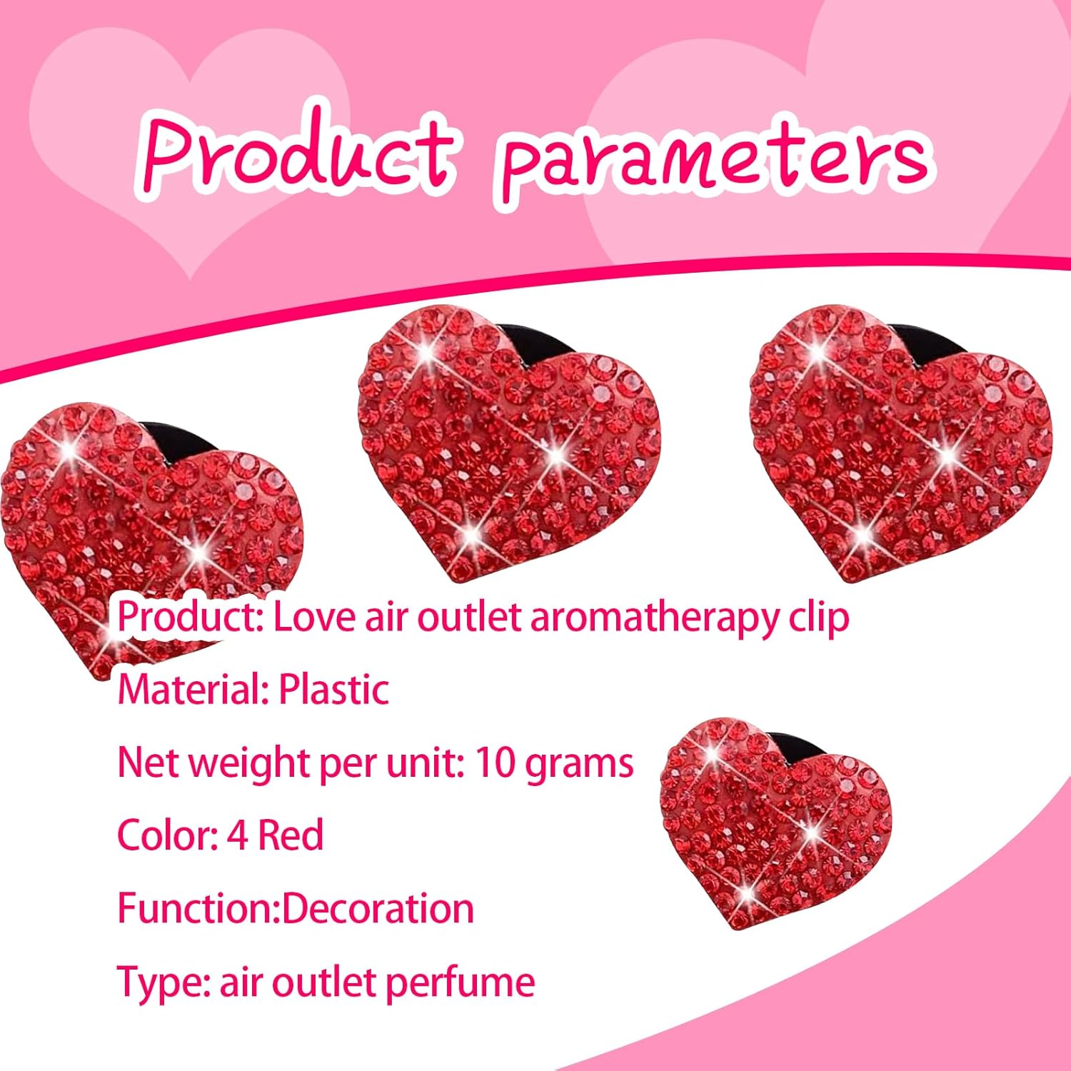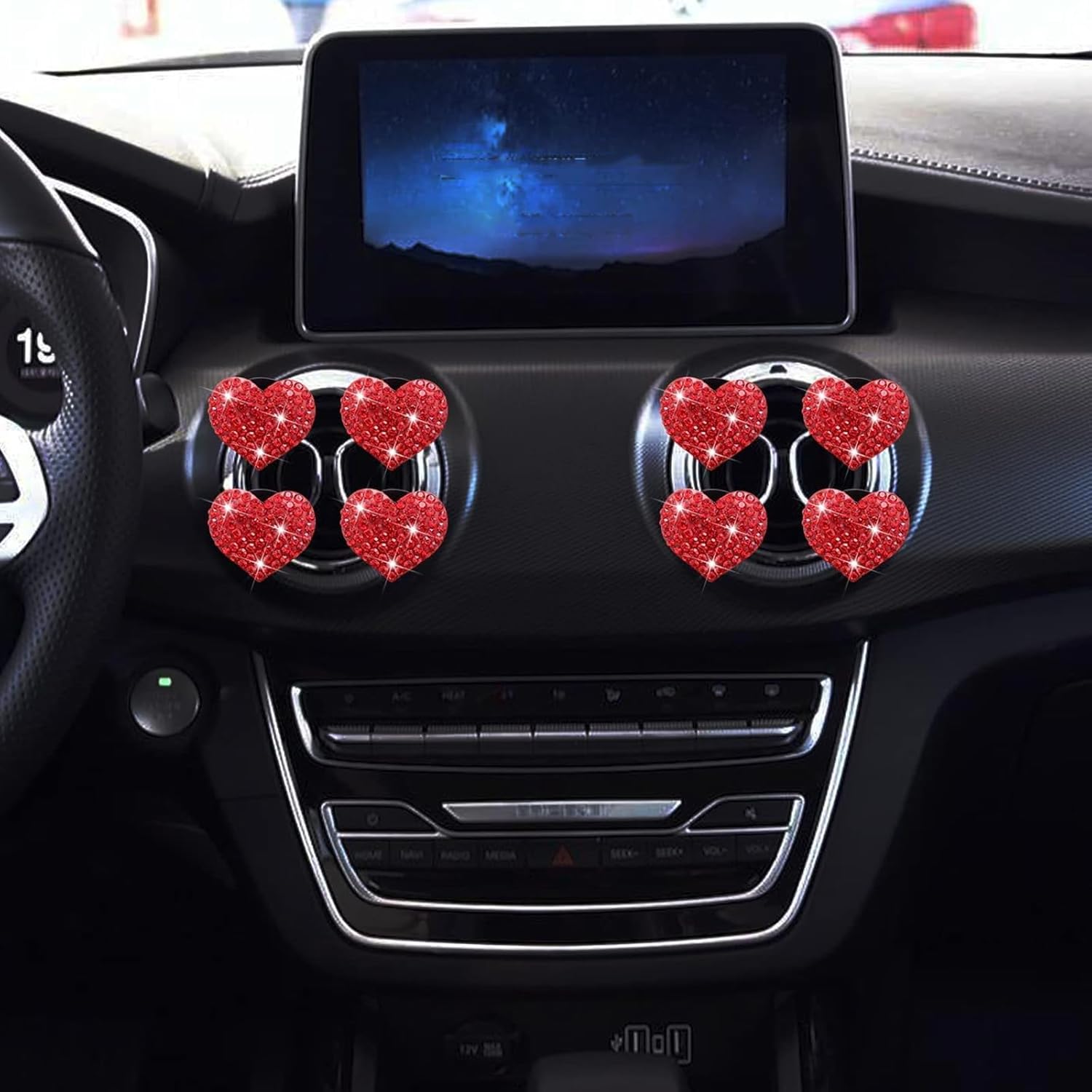 Flygun 4 PCS Bling Car Air Conditioner Air Outlet Decoration, Diamond Studded Shiny Heart-shaped Clip, Cute Charm Interior Aesthetic Ornaments for Women, Universal Car Interior Accessories (Red)