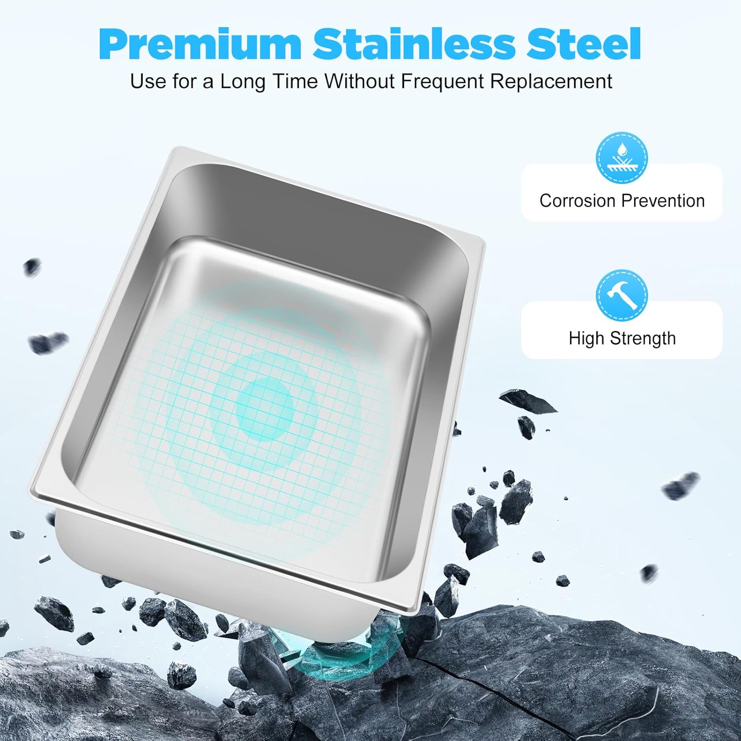 Large CapacityWith the 4" deep, ideal for holding meats, side dishes, fruits, and practically any type of food. Easily handle daily use, busy kitchens, and high-volume buffet service and cateringSpecificationsMaterial: Stainless SteelQuantity: 4 PacksOverall Size: 20x 12 x 4 inchPackage Content4 x Hotel Pans4 x Stainless Steel Lids