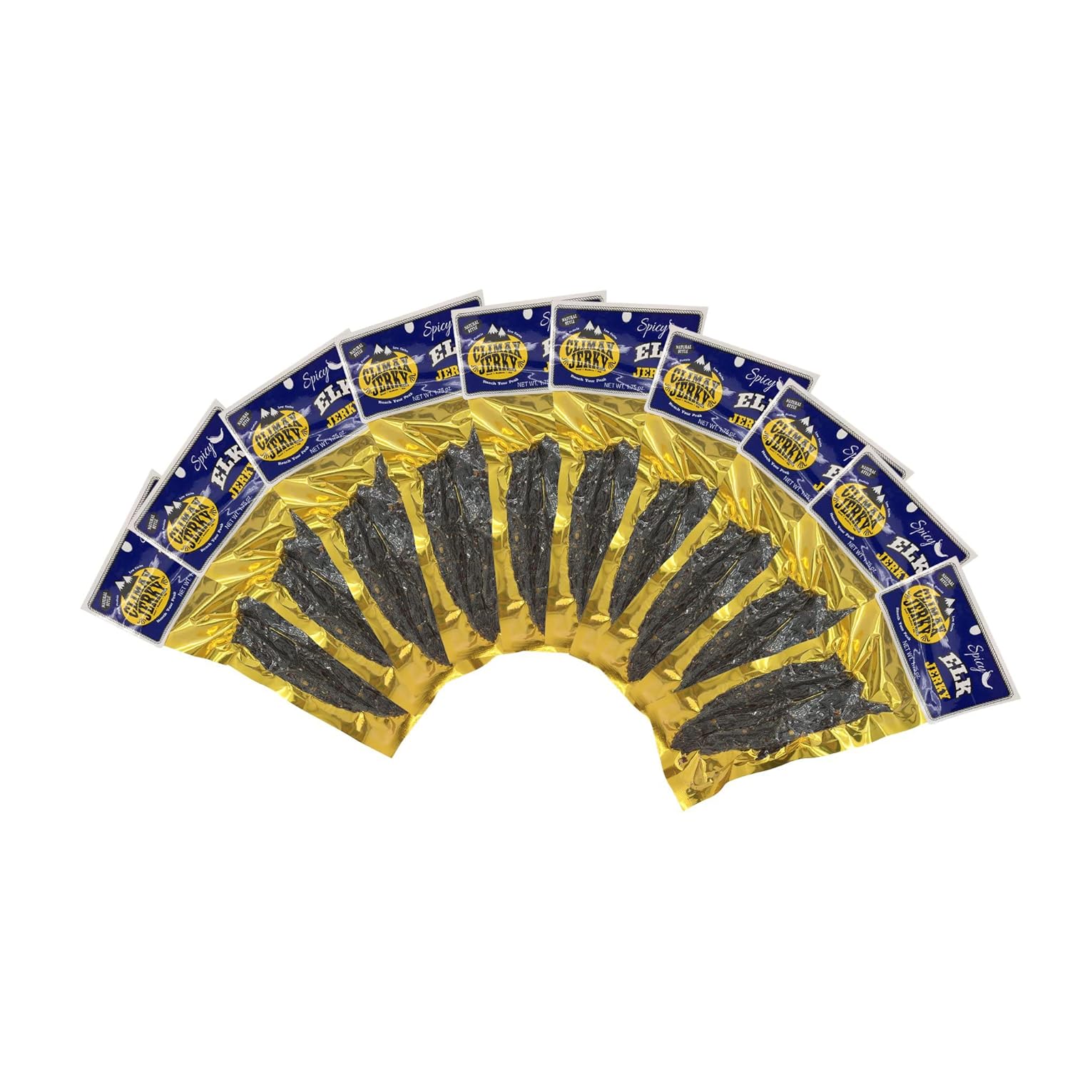 Premium Elk Jerky By Climax JerkyFind your favorite jerky flavor in the great variety of Climax Jerky. Real Elk meat, expertly handled, stripped and smoked for your enjoyment.Our Elk jerky comes in a size packages of 1.5 ouncesDelicious Flavors to Choose FromClimax Jerky offers you jerky in different flavors.With these choices, you will never get bored of your favorite jerky.Quality Meat and ManufactureIf you are tired of bland market products that all taste the same, you must try what the Climax Jerky offers. Our jerky comes from real elk, and we dedicate in delivering a product of exceptional quality. Taste the elk jerky of Climax Jerky and you won’t buy another brand ever again.Locally ProducedCertified by all relevant authorities and using only verifiable locally-raised meats, Climax is proud to contribute to USA economy from its Colorado-based provider headquarters. Support a local product instead of doubtful imported meats.About Climax Jerky• Our jerky is made from real elk, not chopped and formed• We offer jerky that is smoked to perfection• We offer jerky that is oven roasted, juicy and tender• Almost all of our jerky are all natural, no msg or nitrates!Perfect snack for activities like Football, Soccer, Baseball, Tennis, Basketball, Golf, Runners, Walking, Hiking, Cycling, Traveling etc.Taste Our Delicious Elk Jerky, Click Add To Cart Now!