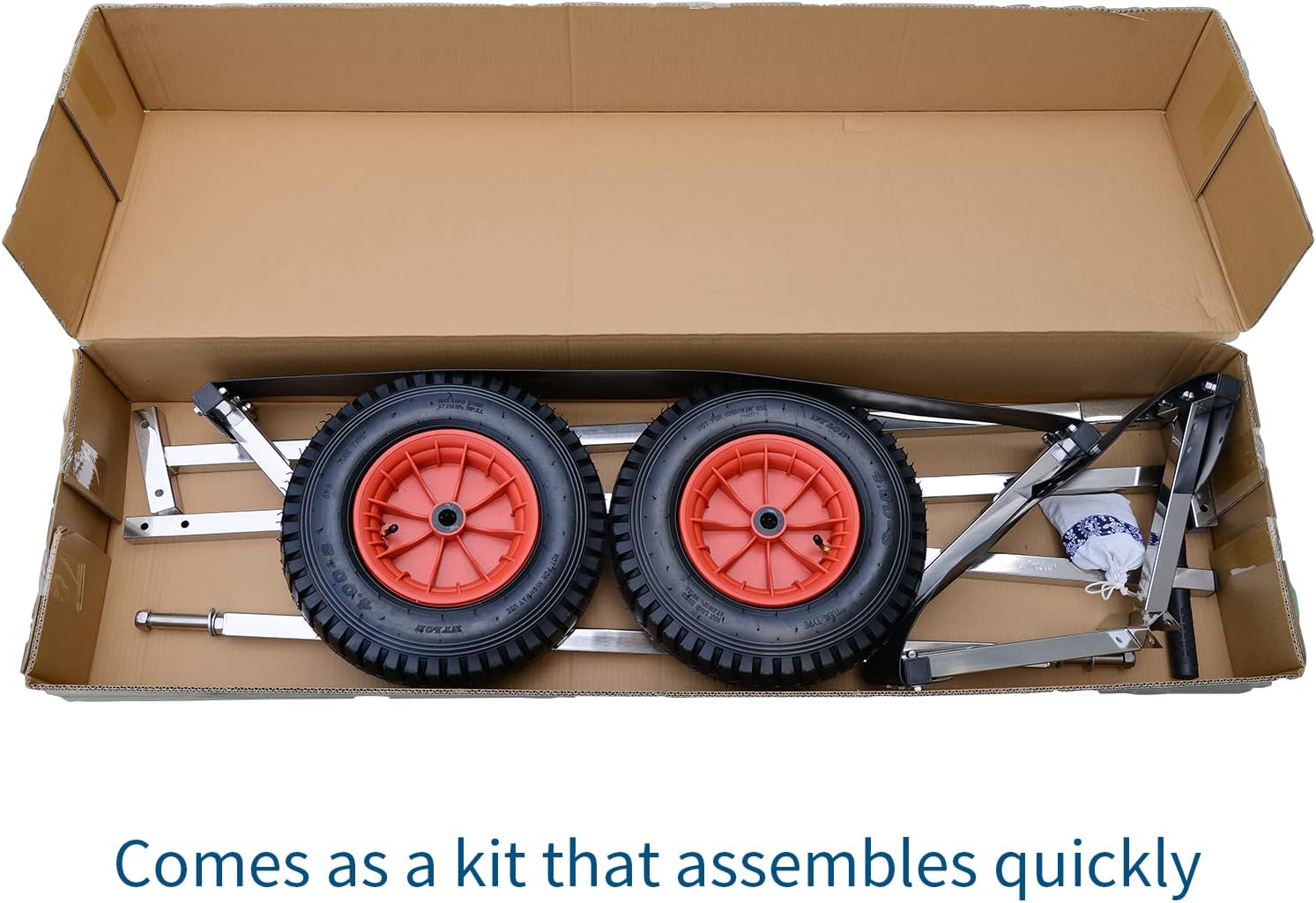 Hand launching trailer for inflatable or aluminum boat . If you need to launch your inflatable boat often, move your RIB around marina, drag the boat down to the water from on shore boatshed or boat storage area - this is another product to make your life easier. Easy way to move your boat alone. Each Inflatable boat hand easy launching dolly comes with set of 16 inch wheels. Please be Advised that Dolly shipped in the box and require some assembly . Require time for assembly, taking anywhere from 10 minutes