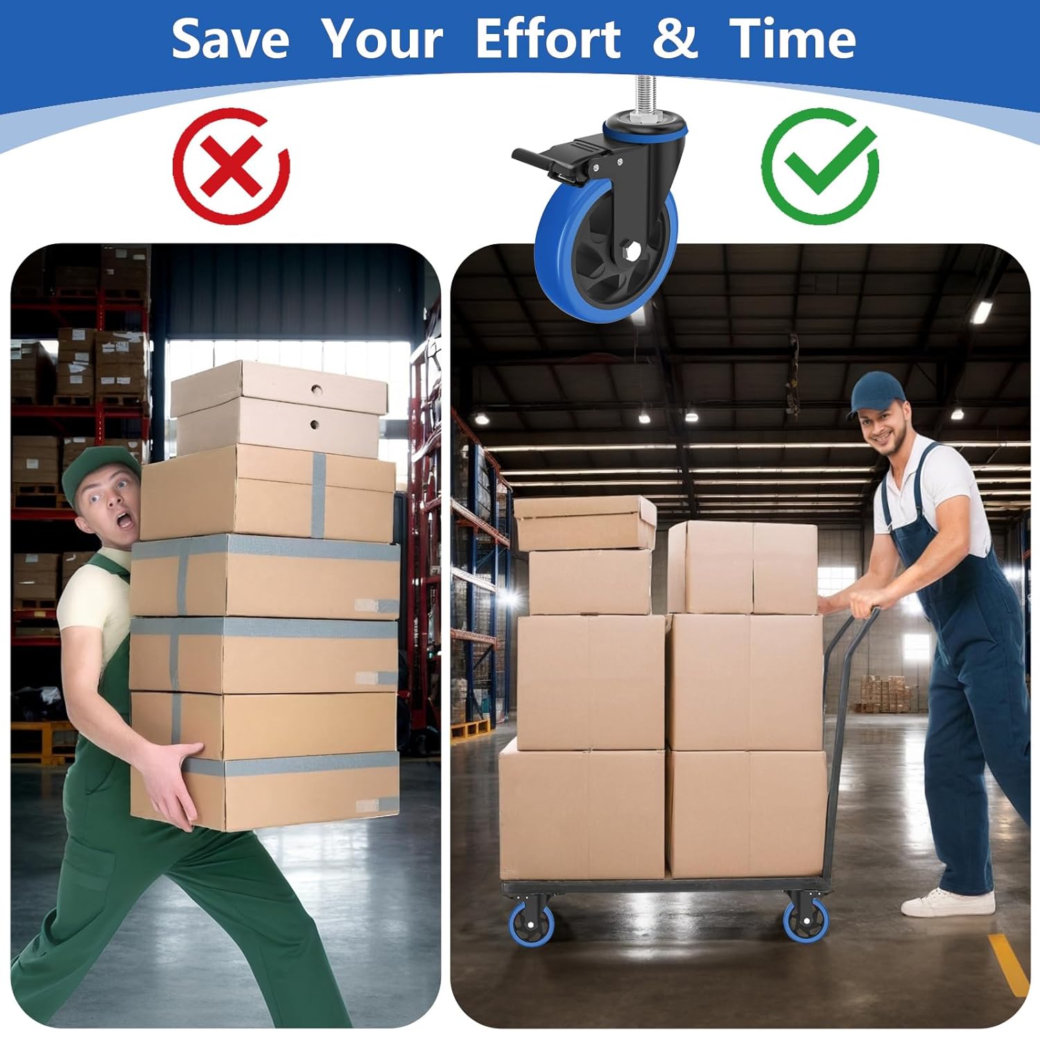 Chaxtr Heavy-Duty Stem Caster Wheels – 2”, 3”, 4”, 5” Unmatched Strength & Stability Chaxtr stem casters are built with reinforced steel for superior load-bearing capacity. The premium polyurethane rubber wheels and dual ball bearings ensure durability and smooth performance. Each caster supports up to 300 lbs (3” model), with a total capacity of 1200 lbs per set of 4. Smooth & Silent Mobility Designed for effortless maneuvering, these 360-degree swivel casters provide seamless movement and precise control. The non-marking PU wheels glide quietly over wood, laminate, vinyl, tile, carpet, and concrete, making them ideal for both indoor and outdoor use. Dual Locking for Maximum Safety Each caster is equipped with a heavy-duty brake system, locking both the wheel and swivel for extra stability. The locking mechanism is easy to engage and release by hand or foot, ensuring safety and preventing unwanted movement. Versatile Applications Chaxtr stem casters are perfect for workbenches, carts, shelves, cabinets, furniture, home appliances, tablesaws, and more. Whether on smooth surfaces or slightly uneven floors, these casters maintain steady performance. Standard American Thread Size Chaxtr caster wheels come with a 1/2"-13 x 1" threaded stem (Diameter: 1/2", Stem Length: 1"). Before purchase, please measure your existing caster stem to ensure compatibility.