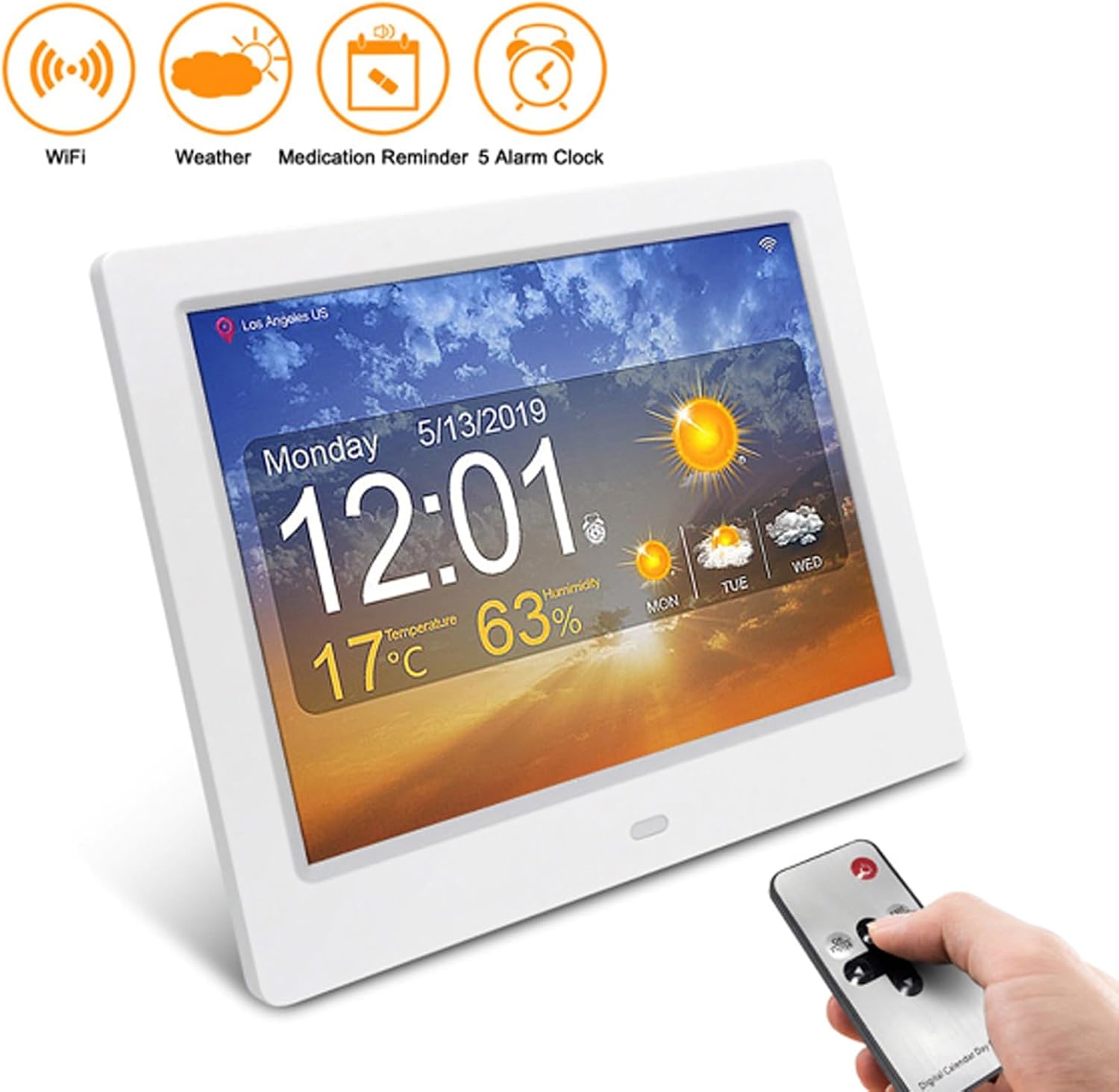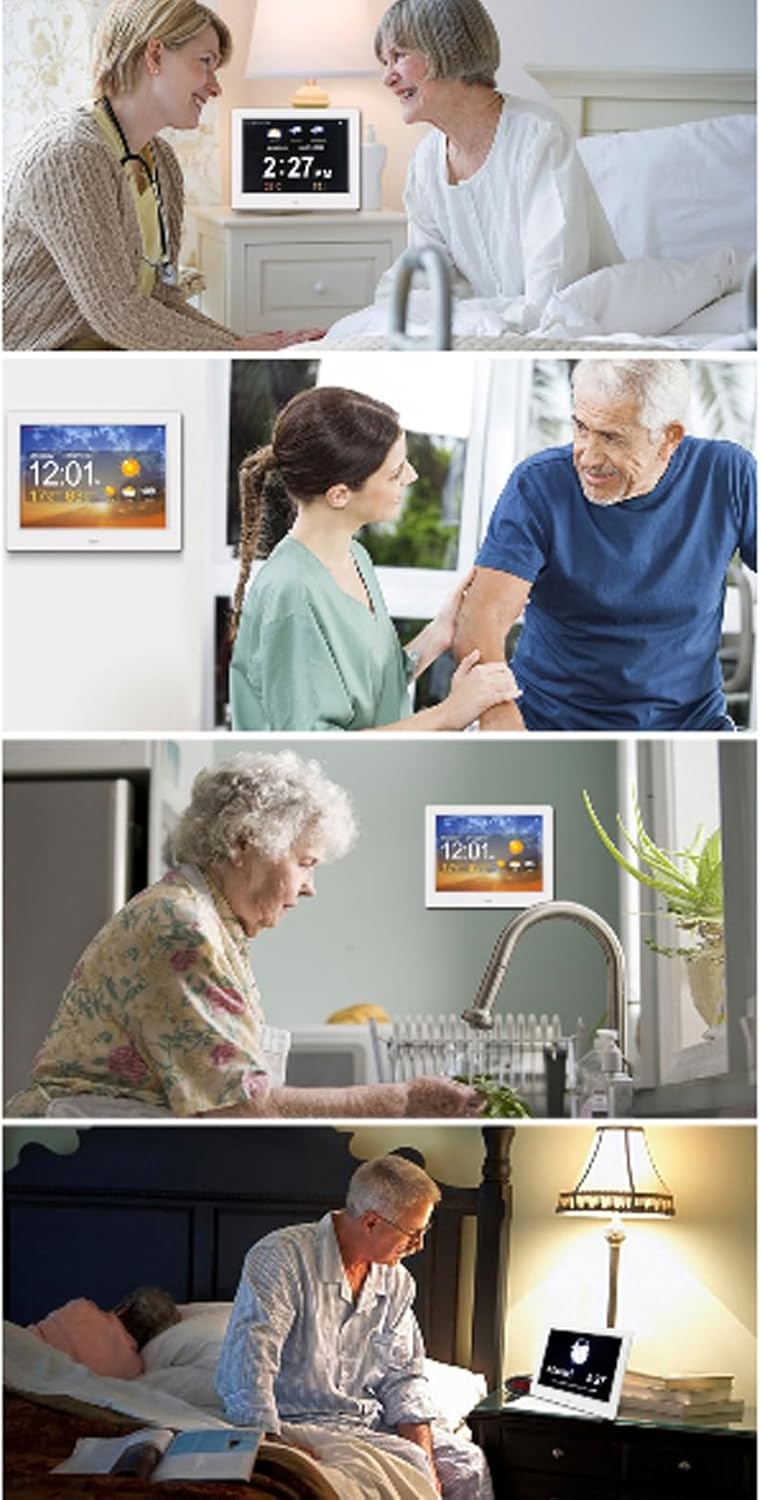 The wonderful gift!The reason why this digital day clock is so unique is that DAY and MONTH are clearly stated!Many elderly people who suffer from memory loss due to stroke, dementia, Alzheimer's disease, or only at advanced age may have difficulty handling acronyms. Most clocks available today abbreviate the month and date.It will display the complete DAY, TIME and DATE, not only for patients with memory loss or dementia.The clearest and most readable day clock.Auto configuration:It will be automatically set to the correct year, month, day, day and time after the power is plugged in and every time the power is interrupted.The cycle of a day is divided into 5 cycles every day: morning, afternoon, evening, night and before dawn. The loved ones will no longer be confused.5 alarm options:5 alarm options and setting tags: meal, medicine, clinic, shower, gardening, cleaning, appointment and walking the dog, which is very useful for the elderly to eat or take medicine daily. There are 5 alarm modes: off, once, every day, only weekdays or only weekends.Auto dimmer is set to medium or low: The automatic dimmer is dimmed at 7:00 PM every night to match the dark background. Now, you can choose to turn it off and a medium or low brightness option.