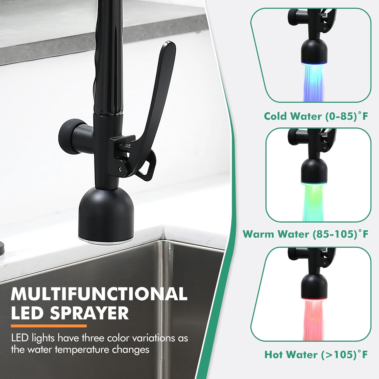 | Additional Features | 360 Swivel, Pull Down Sprayer |