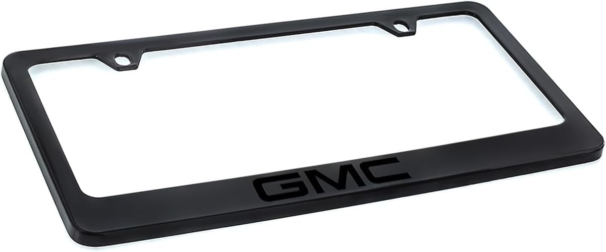 GMC Matte Black Metal License Plate Frame Wide Bottom Engraved with Black Epoxy