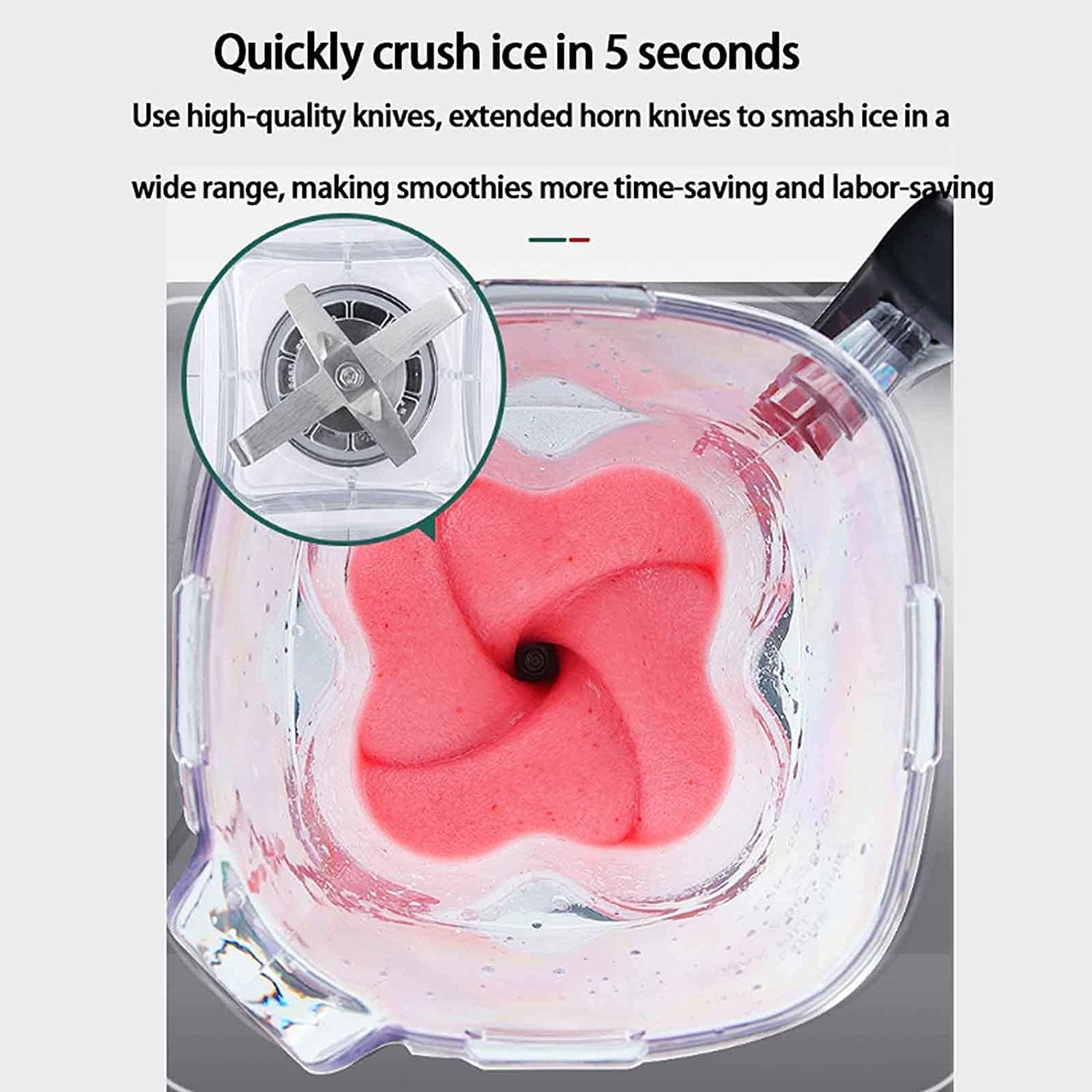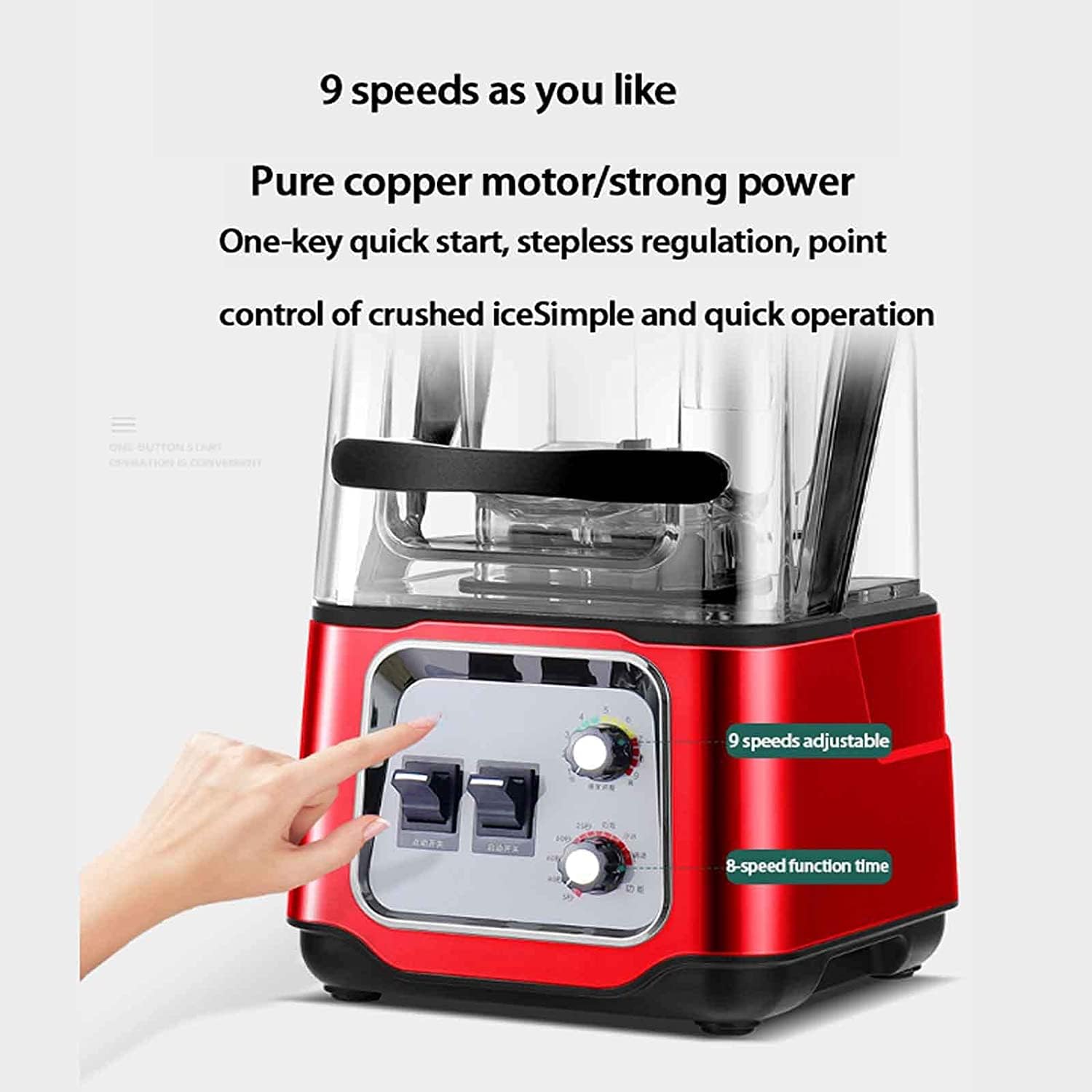SpecificationProduct Name: Silent Smoothie MakerVoltage frequency: 220/ 50HzRated power: 2200WSpeed: 24000~ 32000pmCapacity: 2.2 litersProduct weight: 10KGSize: 240* 240*480mmHigh hardness PC cup, with scale for easy operationHumanized handle, comfortable and labor-saving designMulti-leaf horn cutter head, fast smashing and smashingStable load-bearing machine feet, strong non-slip suction2.2 liters large capacity, make differentThe fruit smoothie of the right amount of ice cubes and fruit cups start the smoothie function, and the delicious smoothie is ready in a few seconds