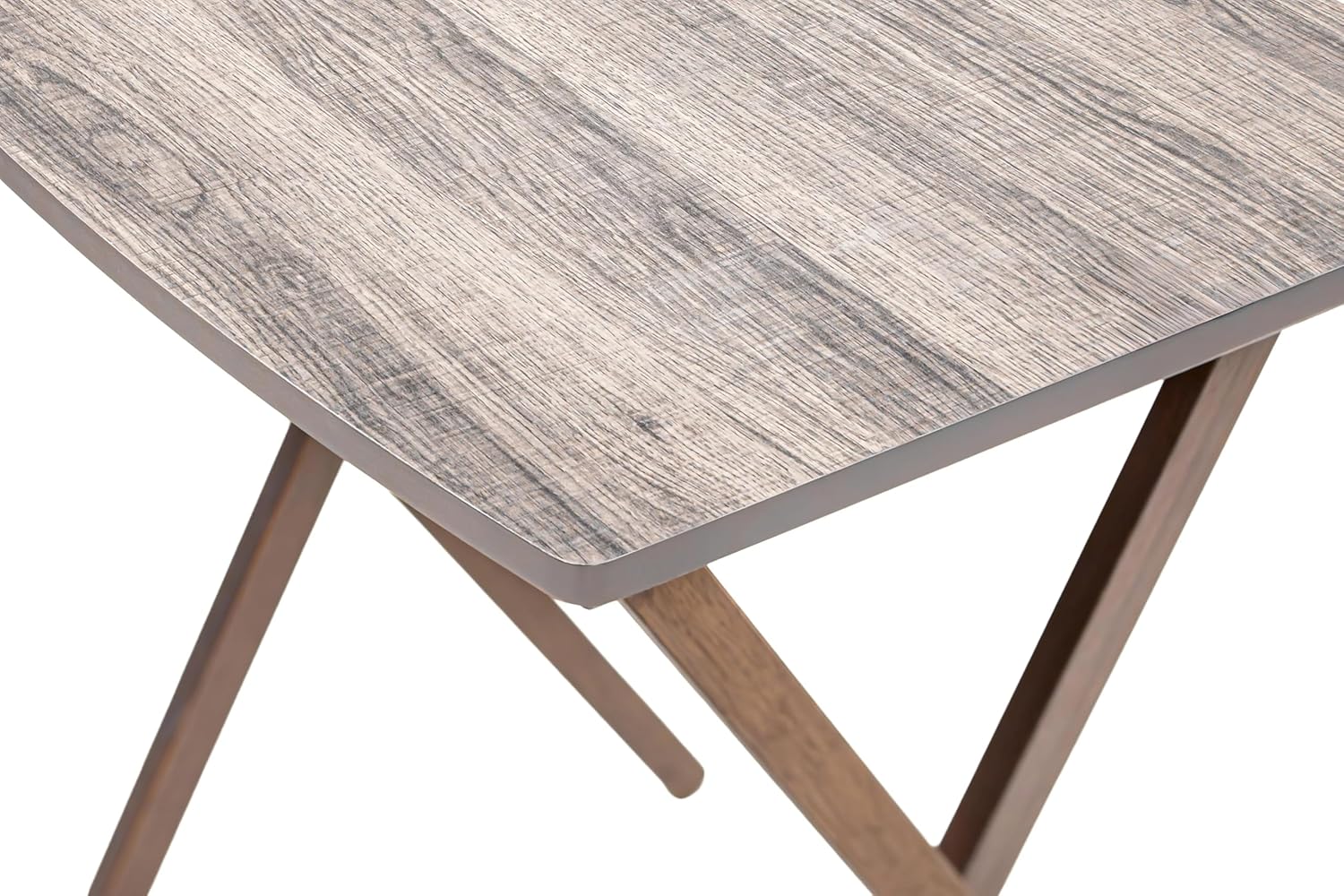 Indoor Oversized Single Folding Tray Table, Rustic Gray, 26" x 23.6 x 17.7" inches. Assembly height 26 inches thoughtfully designed to effortlessly fold away conveniently when not in used, saving spaces when needed. Its classic minimal curved rectangular table top shape along with open up X-frame bases make these table not only look good but also help with stability. Its wooden rustic gray finish looks also sure to compliment any decor scheme! It is ready to use, stylish, durable, light weight and easy to store tables on hand! It sits at a perfect height while you're seated, and rest on intersecting legs to create a strong base for anything you put on its surface. It is the perfect addition to dorm rooms, or smaller living spaces. Use it to instantly creates a desk, small kitchen table and work surface, meals by the television. Its sleek design can also fit in with many styles of décor, a perfect choice for every home. Constructed of MDF tabletop and solid rubberwood leg. Table measurement 26" H x L 23.6" x W 17.7" inches. Enhance your living space with the Indoor Oversized Folding Tray Table in Rustic Gray.
