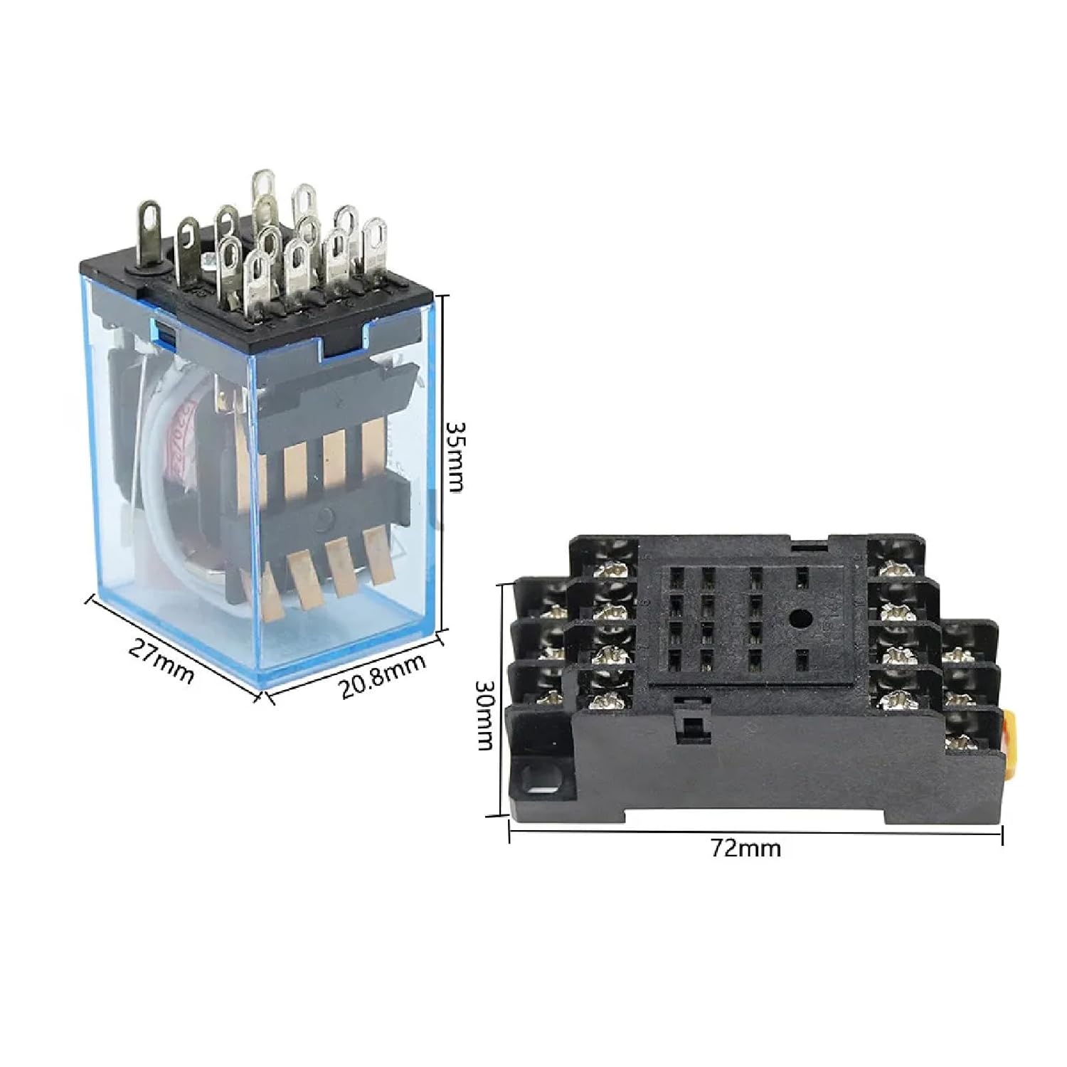 This MY4NJ electromagnetic power relay is a versatile switching solution designed for industrial and automation applications. Featuring four normally open and four normally closed contacts, this 14-pin relay provides exceptional flexibility for complex circuit configurations. The compact design mounts easily on standard DIN rails, making it perfect for control panels where space is at a premium. With multiple coil voltage options including 12V, 24V, 36V, 48V, 110V, 220V, and 380V AC, this relay adapts to various power systems. The durable epoxy-sealed construction protects internal components from environmental factors, ensuring reliable long-term operation. Complete with mounting base for quick installation and replacement.