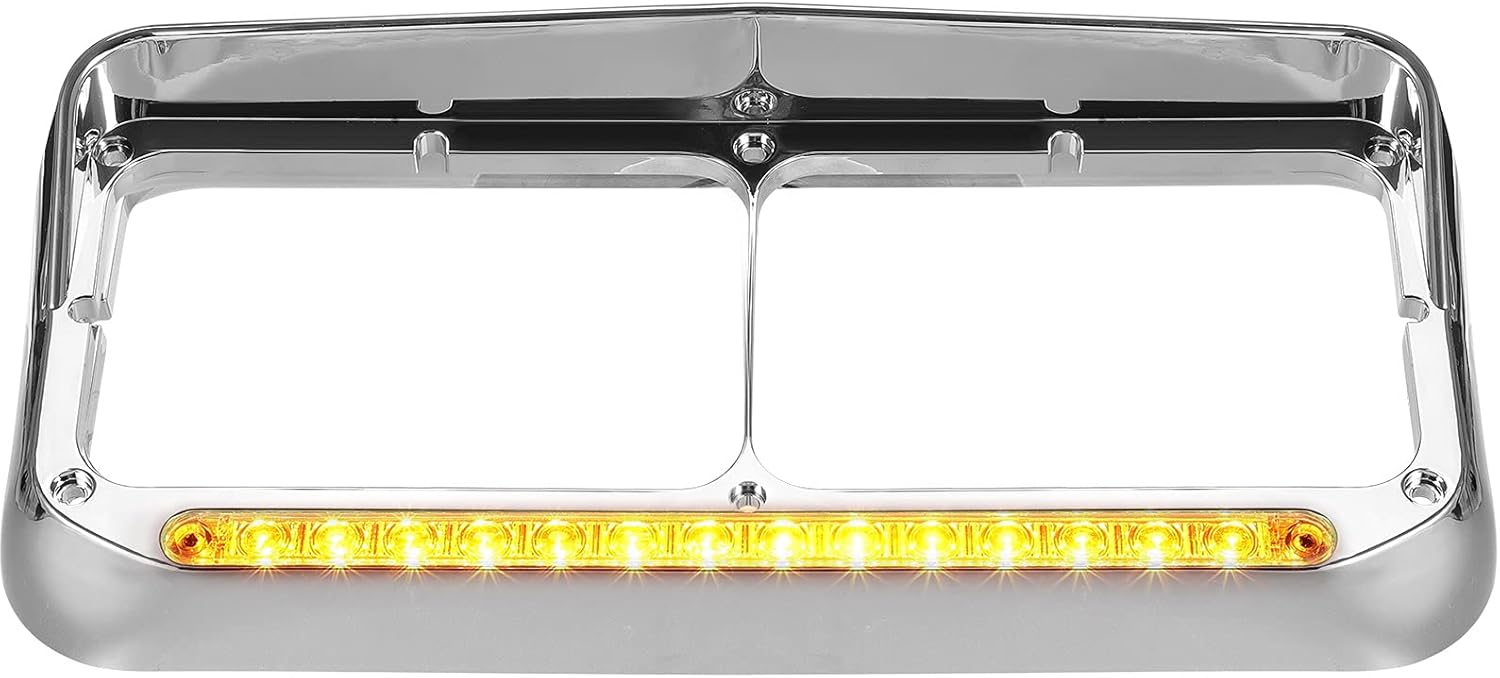 | Included Components | 2pcs Driver and Passenger Side Headlight Bezel with 12 Inch Amber LED Light Strip Chrome (Headlights are not included) |