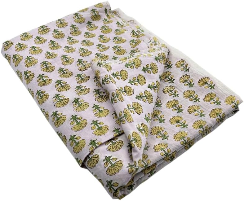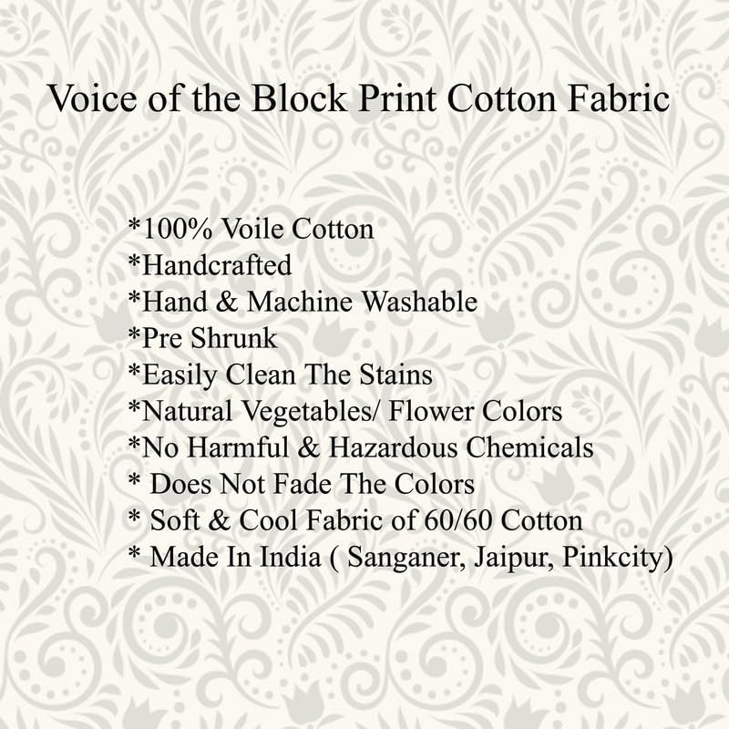 Bring home a touch of timeless Indian elegance with our Hand Block Printed Running Cotton Fabric, sold by the yard. Each piece is lovingly handcrafted by skilled Indian artisans using traditional woodblock printing techniques, resulting in rich and intricate floral patterns that add charm and warmth to any project. Made from 100% pure cotton, this fabric is breathable, soft, and easy to work with, making it ideal for a wide range of applications including dressmaking, quilting, home décor, curtains, table linens, tote bags, and various DIY craft projects. The natural dyes and traditional floral motifs not only reflect cultural richness but also make this fabric an eco-conscious choice. Whether you're creating ethnic wear, crafting for a special event, or looking to infuse a boho vibe into your creations, this versatile fabric is your perfect canvas. Feather soft cotton made block print fabric by yards. This fabric is hand crafted by the artisans of Rajasthan. This block print fabric by yards is available in all colors and block print floral designs. Use of vegetable dyes that are eco friendly and skin soft. You can use these in making dresses of block print fabric, napkins, dinner cloths, handkerchief, covers and wraps of block print, block print curtains and block print home decor. This Indian hand block print consists of floral prints that made on wooden blocks, and then dipped in dye and hand pressed on the fabric. The fabric itself is ultra light and breathable having the properties of cool nature. Fabrics measured in yards, 44 inch wide Slight color variation due to hand printing Cotton voile fabric, Indian block print. Dress Making, Sewing, Crafting, Napkins, Beachwear's, Sarong, Pareo, Table covers, Skirts, Patchwork, quilting, projects, Curtains, Scarf/ Scarves, Kaftan, Kurtis, Tops, DIY Projects and much more.