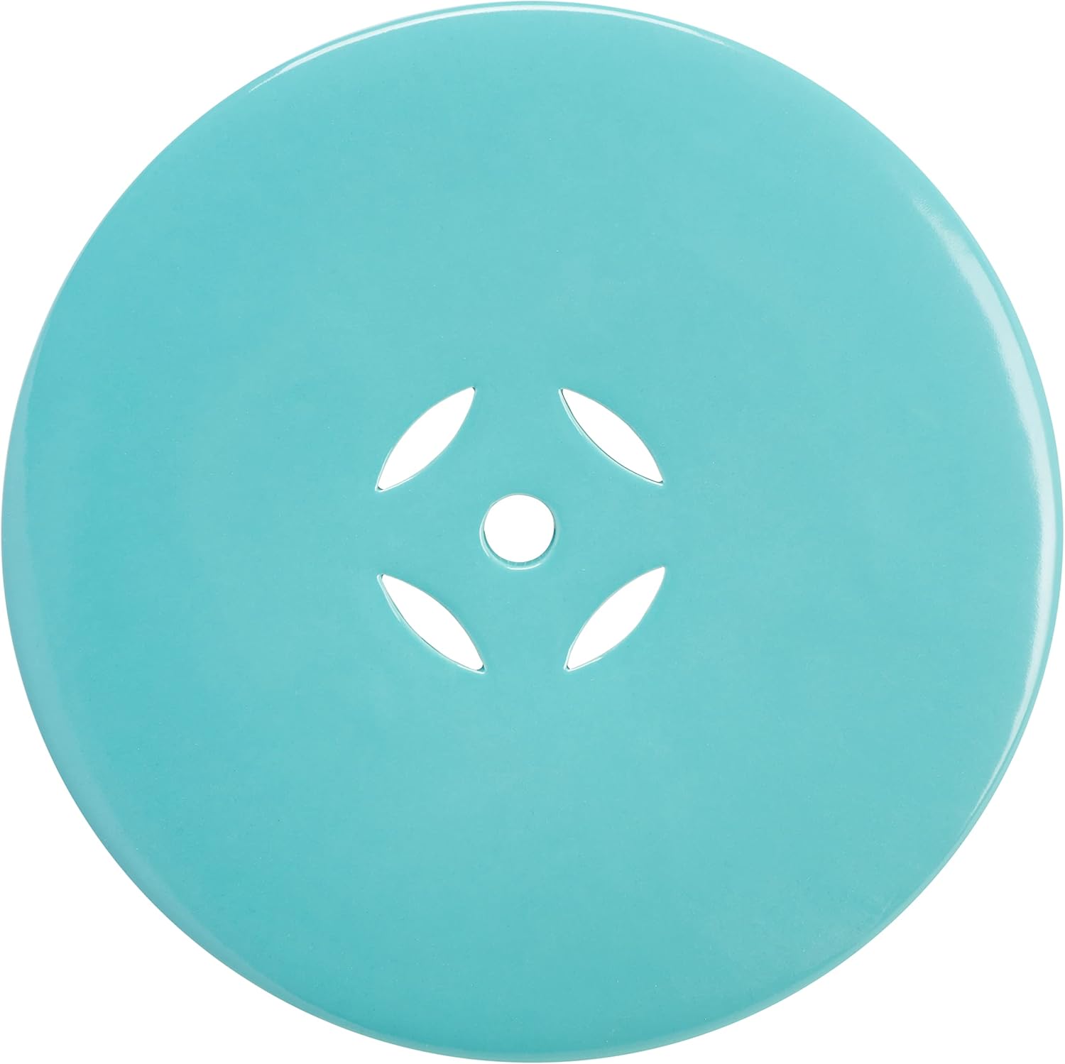 A graceful hourglass silhouette lends updated transitional style to the deep aqua Camilla indoor-outdoor garden stool. Crafted of glazed ceramic with an allover Chinese lucky coin motif, the pierced design evokes images of lacy flower petals.