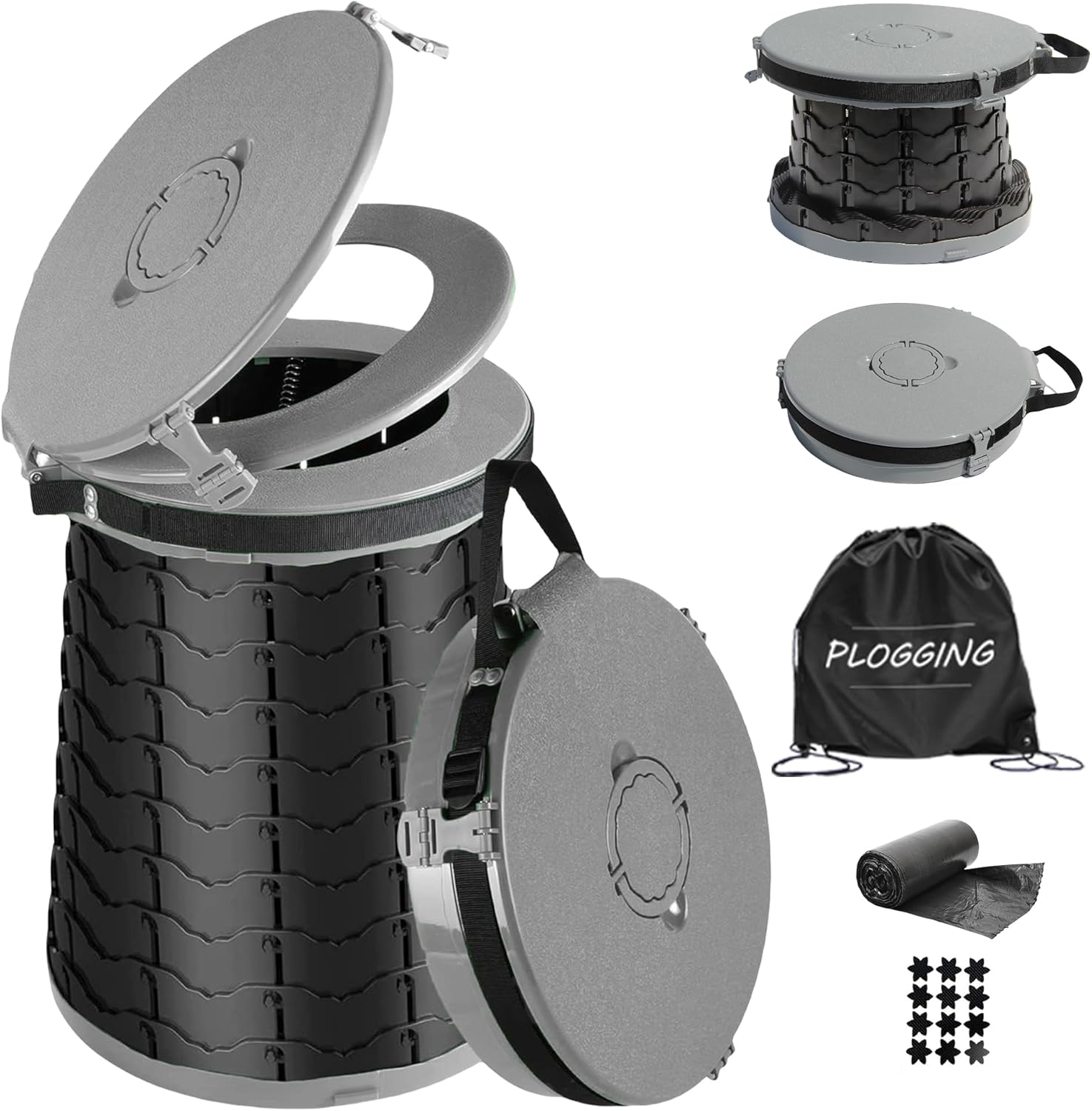 • 【Camping Toilet with GIFT】1 x portable toilet, 1 x Carrying bag, 1 x anti-slip stickers, 7 x garbage bags, 1 x English instruction manual. The PLOGGING folding toilet is suitable for adults of all sizes and weights, I believe you will like this.