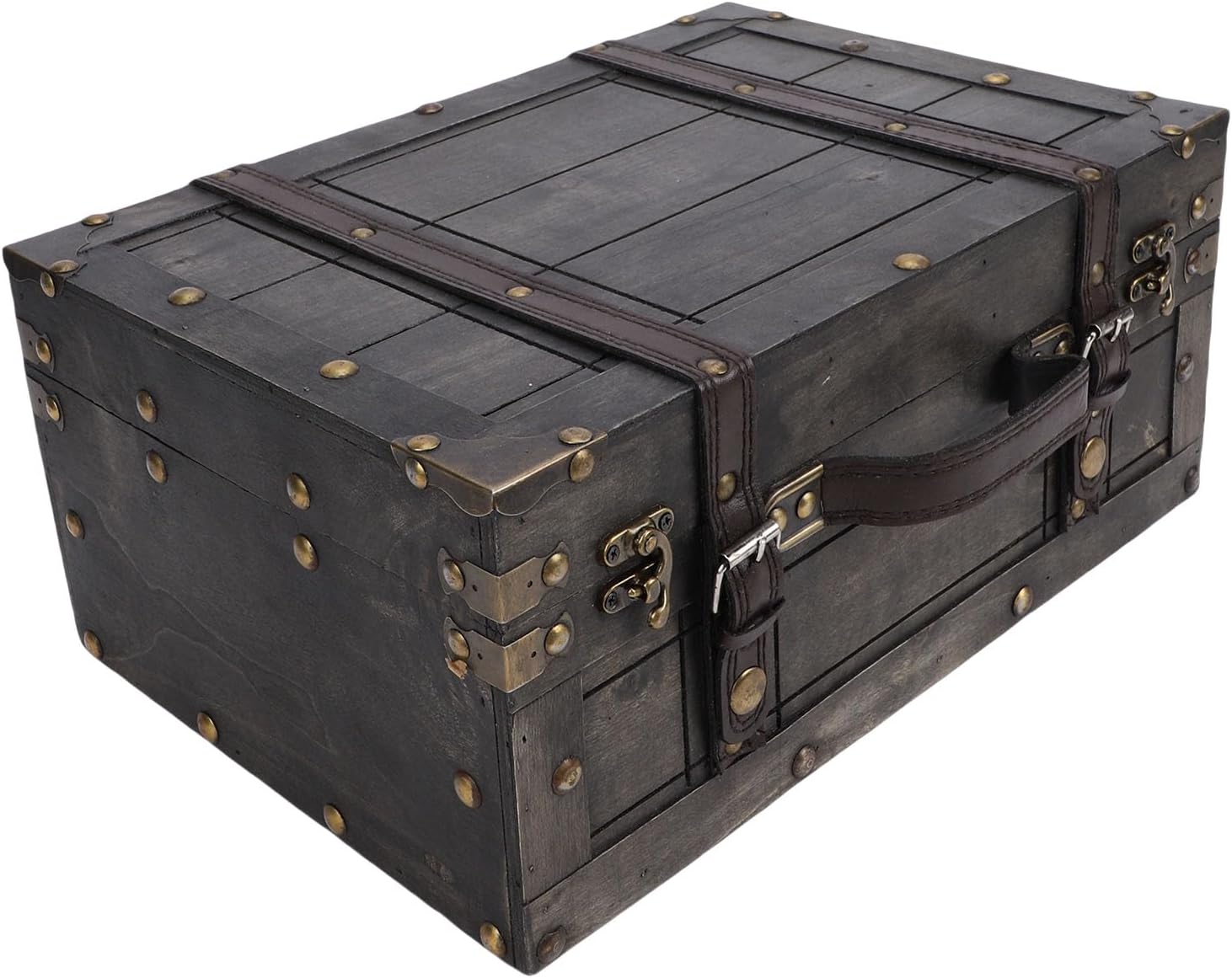 Spec: Item Type: Vintage Storage Trunk Application: Home Decor, Item Storage, Photography Prop Product Size: Approx. 34.5 x 24 x 15.5cm / 13.6 x 9.4 x 6.1in Product Material: Composite Wood, Aluminum Alloy, PU Leather Weight: Approx. 1635g / 57.7oz Package List: 1 x Vintage Storage Trunk