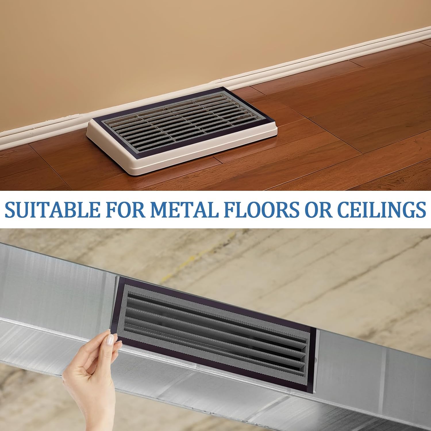 Features.Magnetic Floor Vent Covers for home, wall, ceiling, floor magnetic vent mesh prevents food crumbs from entering the vent.Product Specifications.Material: magnetic strip, Pvc meshColor: BlackSize: 10.16 x 25.4 cm, 4 x 10 inchesPackage includes16 x magnetic floor vent coversAttention.Manual measurement, slight error in size.Colors may vary slightly due to different screen displays.