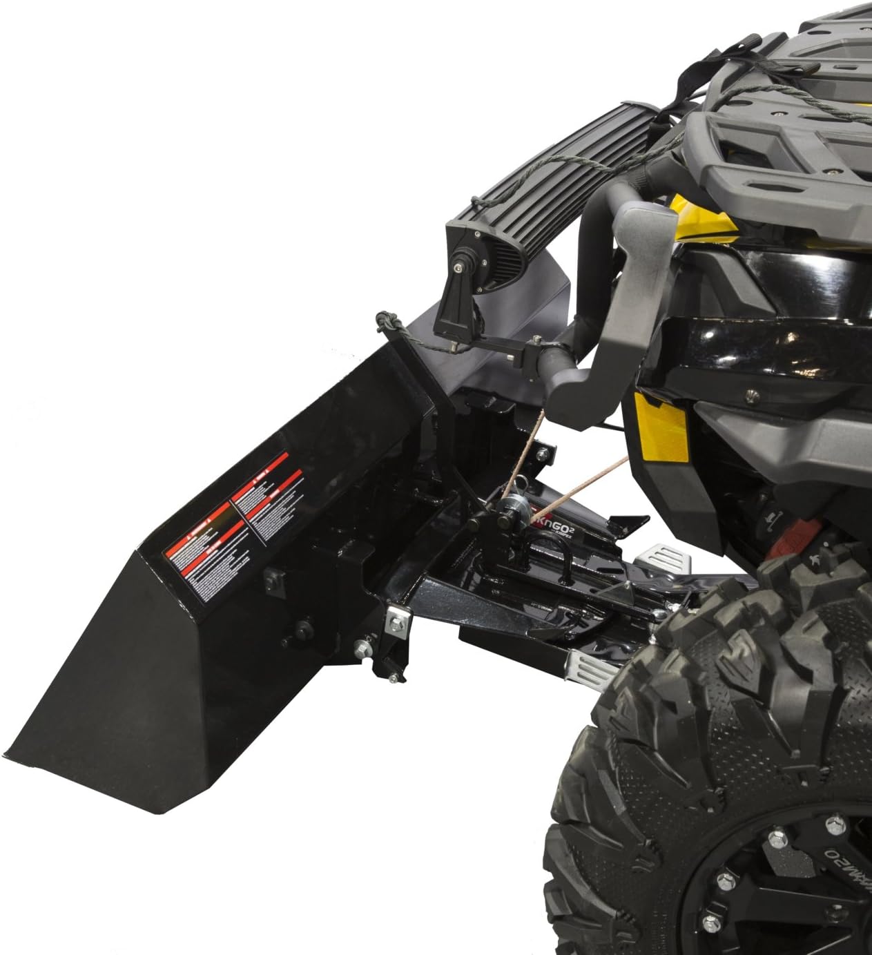 Model, Click ftNft Go 2 Length, 42inch Thickness, 14 Gauge Material, Steel Color, Black Blade type, BucketMaximum capacity of 200 lb Use with adjustable strap hooked to the winche The width of bucket is 42 inches Quick angular rotate system of 25º left and right side Do not exceed a speed of 8km/h (5 mph) The maximum height to lift the plow is 20 inches Installation time on the CNG2 attach system is 45 minutes The bucket is activate with a manual system and mechanical system Adjust the vehicle suspension to its tightest position in order to have better control with the plow
