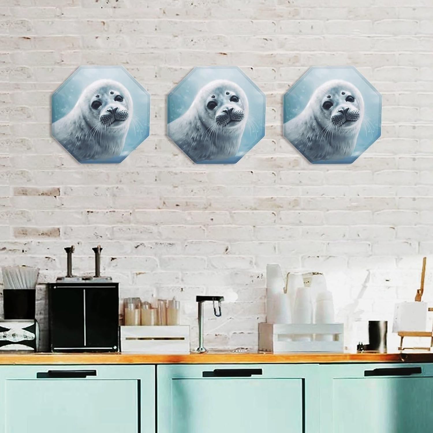This modern abstract wall decoration brings a luxurious feel to your walls, creating a stylish home décor. It can be easily installed on any blank wall, adding texture and depth to your home.Personalized signs are perfect for kitchens, bathrooms, doors, garages, TV walls, living rooms, and other spaces. They can be hung in living rooms, bedrooms, hallways, offices, meeting rooms, and waiting areas. Use them on manhole covers, partition walls, or any other small, unique sign you desire.Our octagonal iron plate is the perfect gift because each of our octagonal iron Harp Seal Painting Wallpaper plates features a unique pattern, suitable for any occasion. The unique pattern adds a distinctive touch.Come and choose the decorative mural that suits you best!