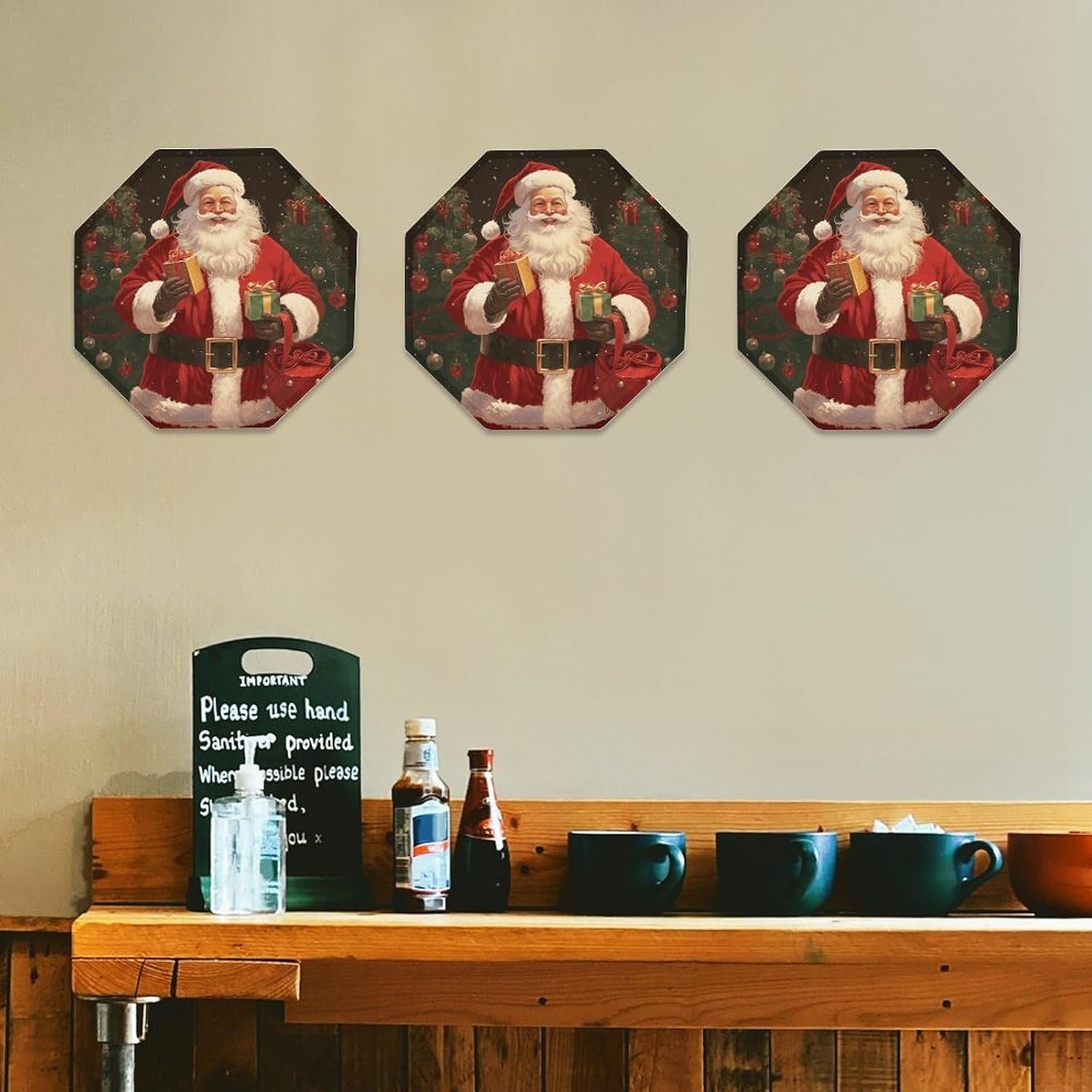 This modern abstract wall decoration brings a luxurious feel to your walls, creating a stylish home décor. It can be easily installed on any blank wall, adding texture and depth to your home.Personalized signs are perfect for kitchens, bathrooms, doors, garages, TV walls, living rooms, and other spaces. They can be hung in living rooms, bedrooms, hallways, offices, meeting rooms, and waiting areas. Use them on manhole covers, partition walls, or any other small, unique sign you desire.Our octagonal iron plate is the perfect gift because each of our octagonal iron Santa Claus plates features a unique pattern, suitable for any occasion. The unique pattern adds a distinctive touch.Come and choose the decorative mural that suits you best!