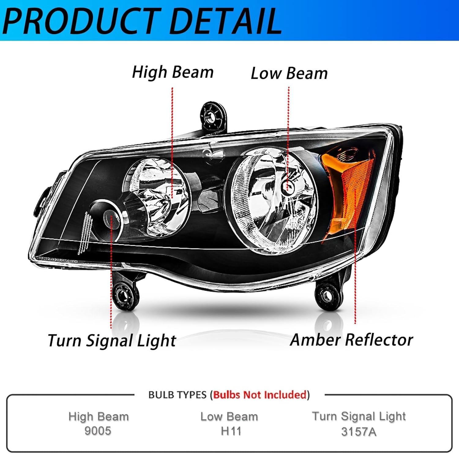 | Included Components | 1 x Pair of Headlights Assembly (Driver and Passenger Side), Bulbs are not include (Low Beam:H11 / High Beam:9005) |