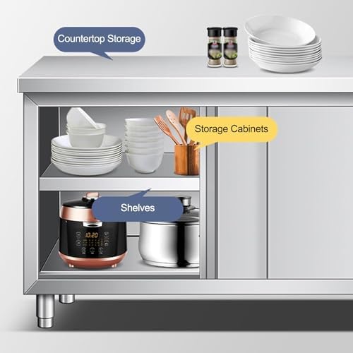 The Stainless Steel Commercial Work Table Cabinet is designed to elevate your kitchen prep experience, whether at home or in a bustling restaurant environment. With its sleek stainless steel finish, this work table not only offers a modern aesthetic but also ensures durability and easy maintenance, making it a long-lasting addition to your workspace. Featuring two sliding doors, this cabinet provides ample storage for kitchen essentials, allowing you to keep your ingredients and tools organized and within reach. The spacious design offers an excellent surface for food preparation, making it perfect for chefs and home cooks alike. This versatile table is also well-suited for other settings, such as garages or workshops, where a sturdy work surface is required. The multifunctional nature of this metal work table makes it a valuable asset for any culinary or DIY enthusiast. Its robust construction supports various tasks, from meal prep to assembling crafts, ensuring efficiency and convenience in your daily activities. Invest in the Stainless Steel Commercial Work Table Cabinet, and experience the blend of style, functionality, and practicality that enhances your workspace.