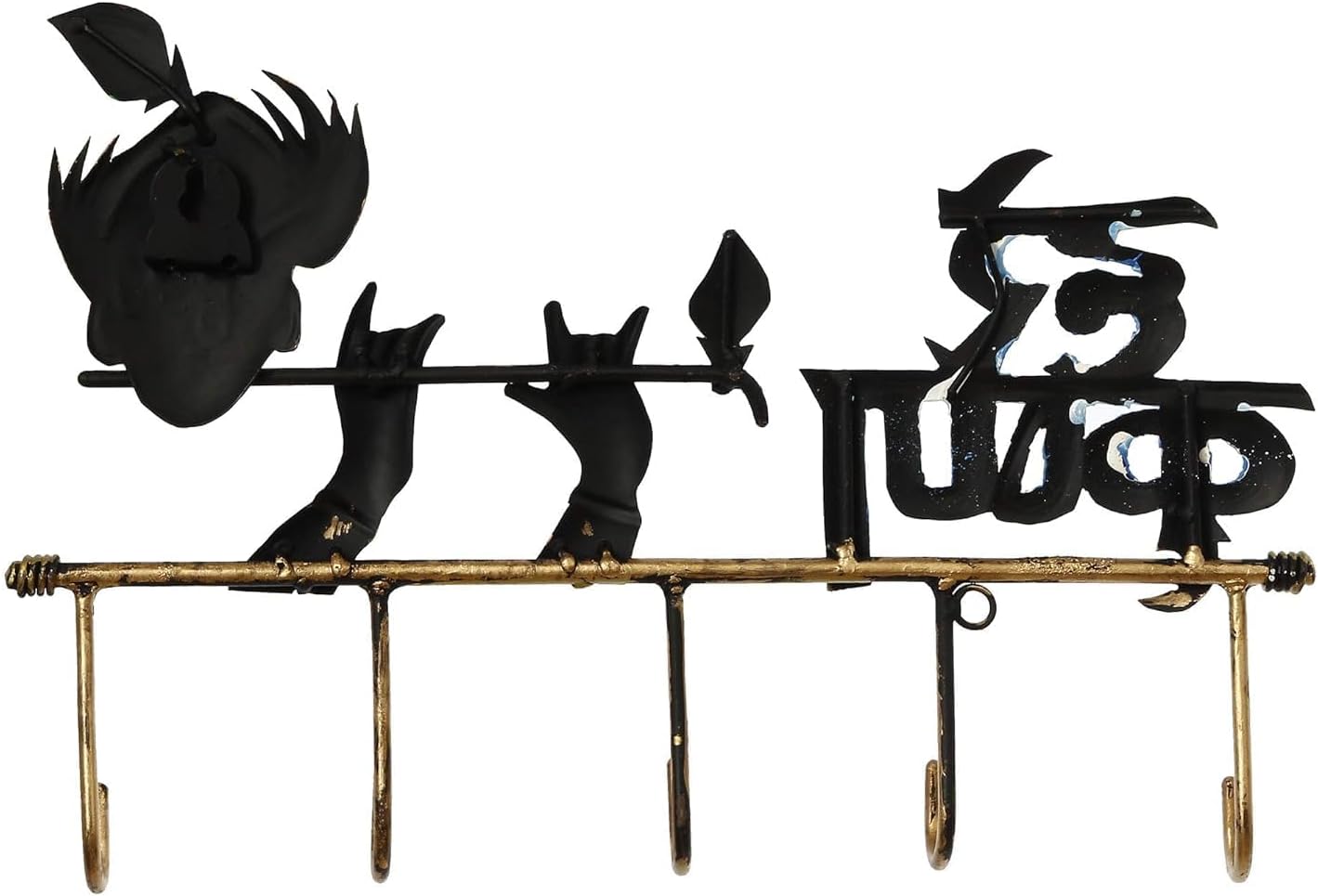 Product Description1. Transform your entryway with this artistically designed key holder featuring Lord Krishna playing the flute.2. This wall-mounted organizer comes with 5 sturdy hooks to keep your keys neatly arranged and easily accessible.3. Crafted from durable iron, this decorative piece serves both form and function, adding a touch of spiritual elegance to your space while helping you stay organized. 4. Perfect for homes and offices, this key holder can be mounted in your kitchen, entryway, hallway, or living room.5. The thoughtful design ensures your keys sELEGANT DESIGN: Beautiful wall-mounted key holder featuring Krishna playing flute artwork, adding a decorative touch to your home decor while staying functionaltay secure while the beautiful Krishna motif adds a cultural accent to your wall decor.6. The practical hook layout makes it easy to hang and retrieve keys, while the robust construction ensures long-lasting performance.7. Keep your keys organized in style with this unique key holder that combines traditional artistry with modern functionality.