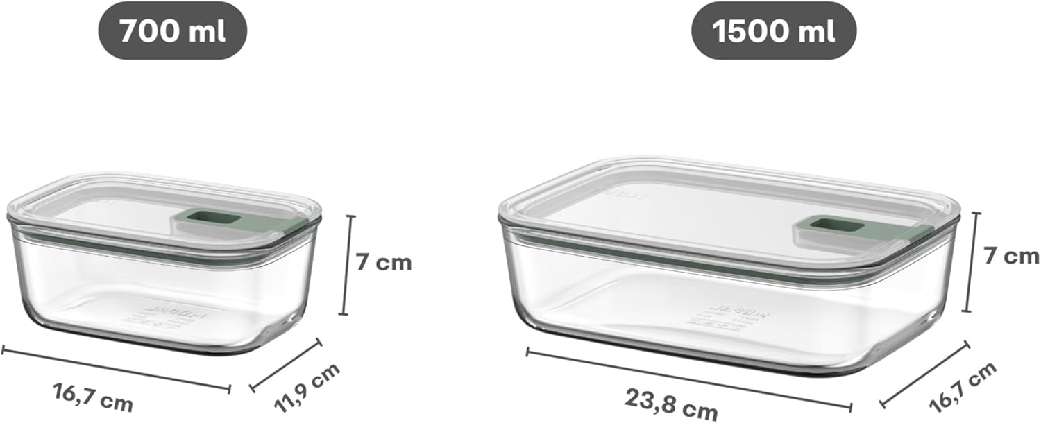 The oven-safe Meal Prep Box can be securely closed with its practical lid. Perfect for preparing, storing and serving delicious potato gratins or your favourite pasta bake. Ideal for meal prepping and advance preparation. Thanks to the clever sliding mechanism and the clearly visible seal, the glass container closes airtight and aroma-tight, giving you peace of mind when storing your food. Slide, seal & store! From the fridge or freezer straight into the oven without the lid, or into the microwave with the lid on, then enjoy. When using in the microwave, simply open the vent in the lid. The smart design of this kitchen storage hero keeps everything organised in your fridge and freezer. And thanks to the transparent lid, you can always see at a glance what’s inside the container.
