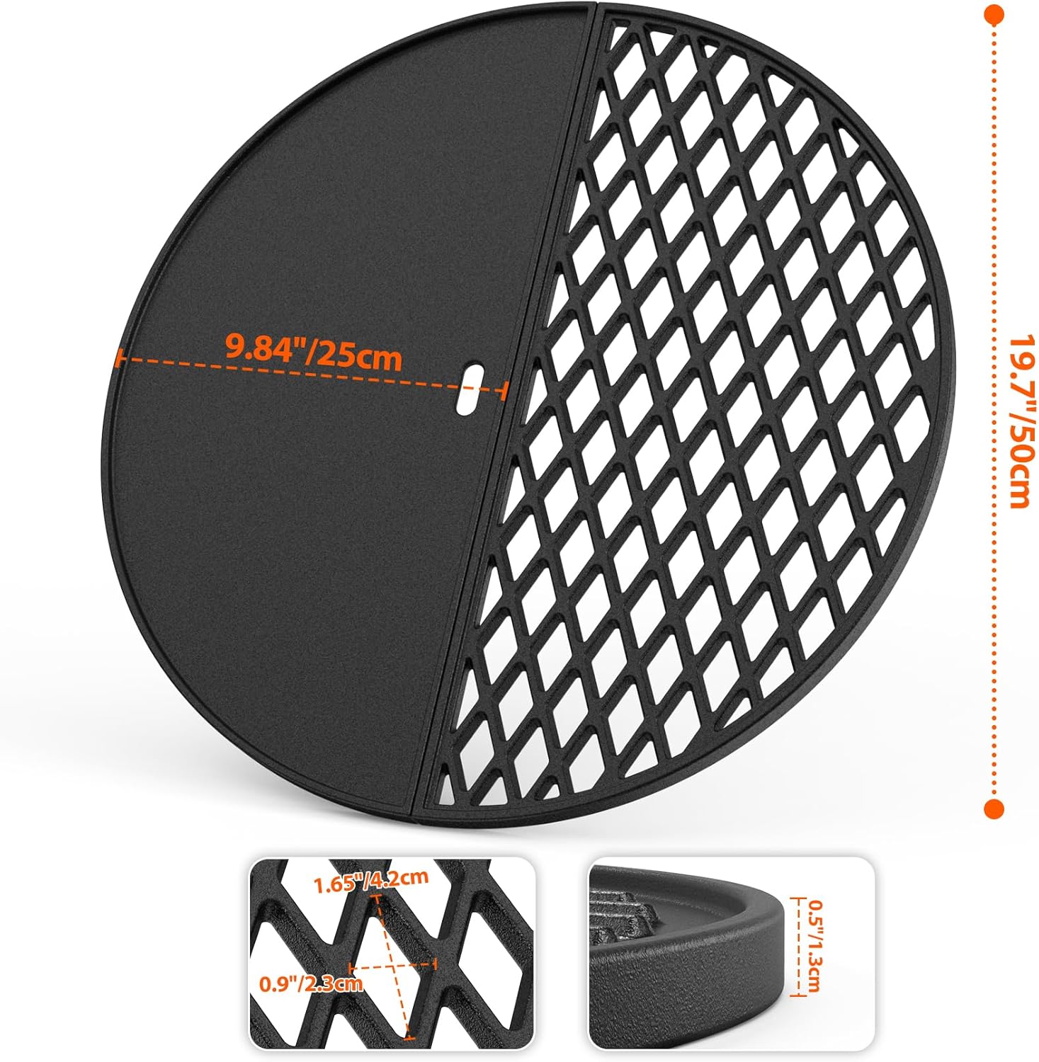 Onlyfire Cast Iron Griddle and Grate Combo for Char-Griller Akorn Kamado Grill