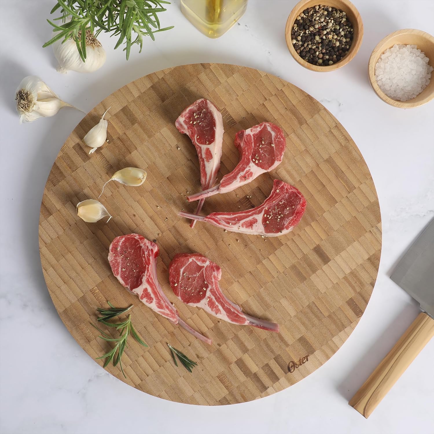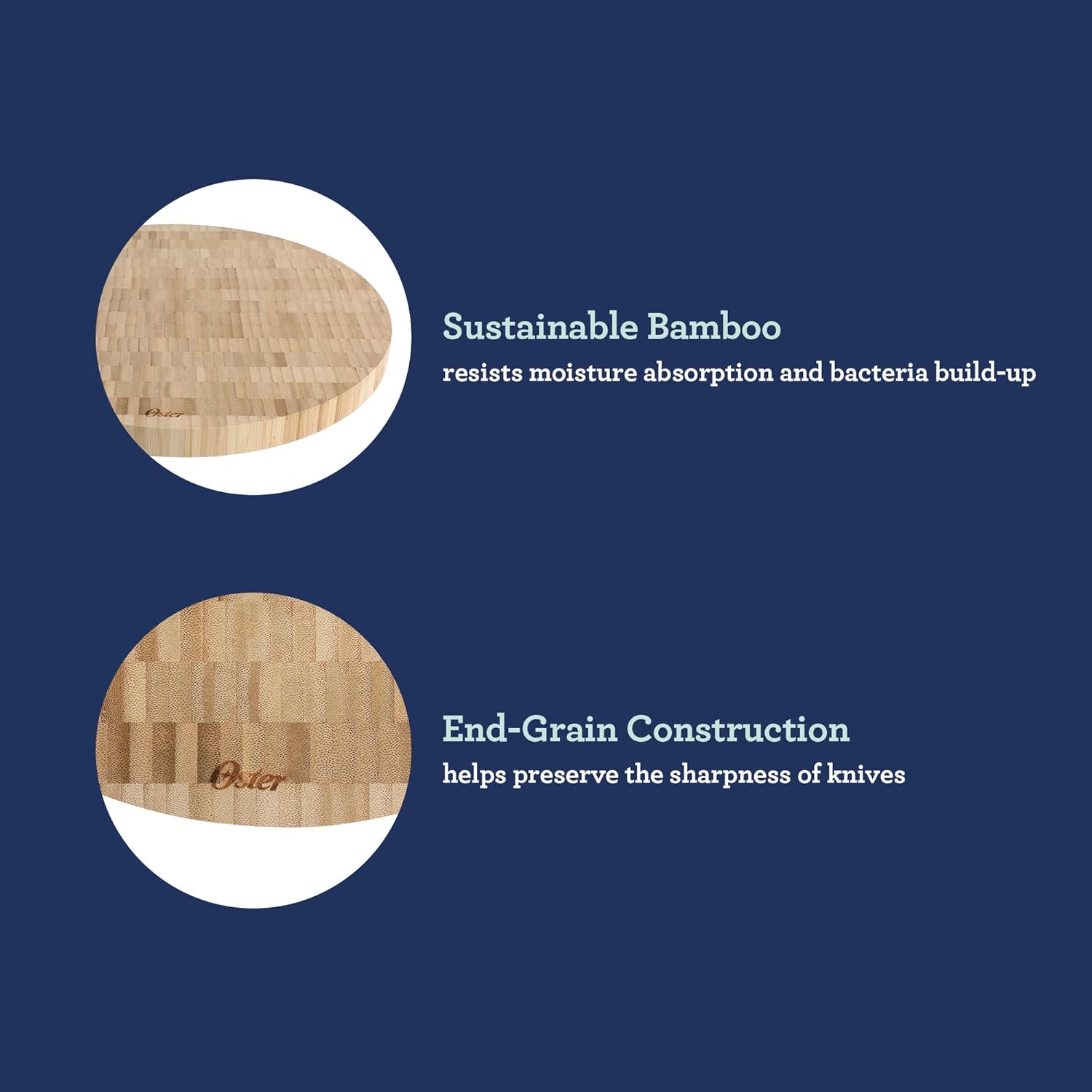 Bring confidence and comfort into your kitchen with the Capehart Bamboo Cutting Board from Oster™. Designed for the home cook who values fresh ingredients and family-style meals, this board helps keep your food clean and your prep space organized. Crafted from durable, sustainable bamboo, it resists moisture to help the surface stay cleaner between uses. The end-grain surface helps preserve the sharpness of your knife blades, while the beautiful checkerboard design makes it just as ready for chopping vegetables as it is for serving empanadas, cheeses, and fresh fruit at the table.Cook with pride. Serve with style. And trust every cut — from weeknight dinners to weekend gatherings.Get Creative in the Kitchen with Oster™. A trusted homewares brand for almost 100 years, Oster™ has a wide selection of durable and versatile products for today's home cooking and entertaining environment. Simple quality cookware, cutlery, food prep gadgets, and more provide dependability and functionality to meet everyday kitchen needs. From family mealtimes to weekend celebrations, Oster™ is ready to help and serve generations of home cooks in the US, Latin America, and beyond.