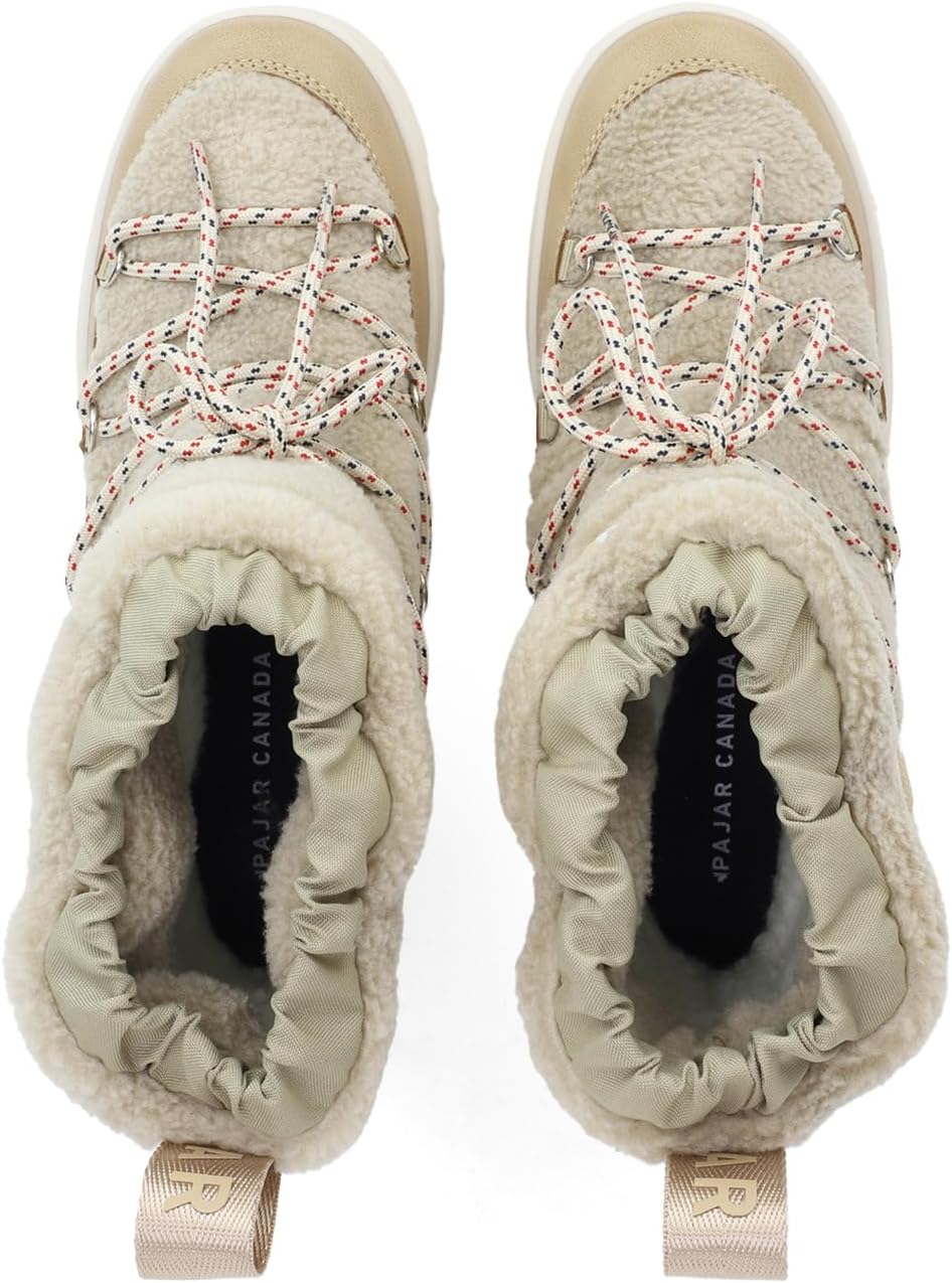 PAJAR CANADA GALAXY LAMA Stay chic and cozy in the Galaxy Lama, designed with a durable nylon and Sherpa upper. PAJAR-TEX waterproof membrane ensures your feet stay dry, while the comfort-rated warmth down to -30°C keeps you cozy all season. Featuring a removable ultralight insole and a thermal rubber platform traction lug sole, these boots are both fashionable and functional.
