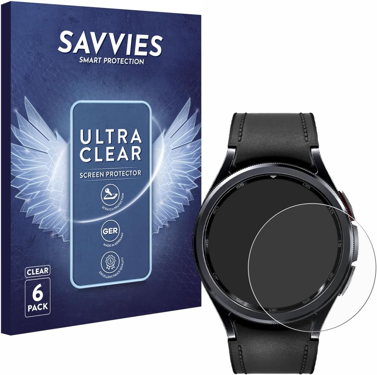 High Quality, HD-Clear, 3D Touch Compatible, very simple assembly Savvies Screen Protector SU75 UltraClear (6 Pack) fits ideally as a reliable and invisible protection - compatible with Samsung Galaxy Watch 6 Classic (47 mm), your device. Superior High Transparent and Ultra Thin: The ultra thin, 99% highly transparent HD surface of the protection film allows a pin sharp and genuine presentation of contents and colors on the screen. The Screen Protector is almost invisible when applied. Easy installation: bubble and dust-free: Owing to the special silicone adhesive layer, the Screen Protector can be easily applied bubble-free. The film nearly automatically applies itself to the screen. Due to the anti-static film material of the Screen Protector the film is not collecting any dust during application. A residue-free removal or repositioning of the protection film is possible at any time. Real Touch Sensitivity: Savvies Screen Protectors are optimized for use on touch screens. High Quality: The Savvies Screen Protectors are manufactured in Germany with the latest high-precision laser machinery. Exact tailoring to forms and excellent border adhesion are guaranteed - compatible with Samsung Galaxy Watch 6 Classic (47 mm), your device. 6x Savvies SU75 Screen Protector compatible with Samsung Galaxy Watch 6 Classic (47 mm) (6x Display).