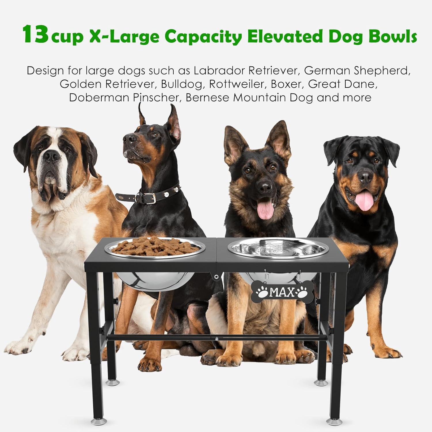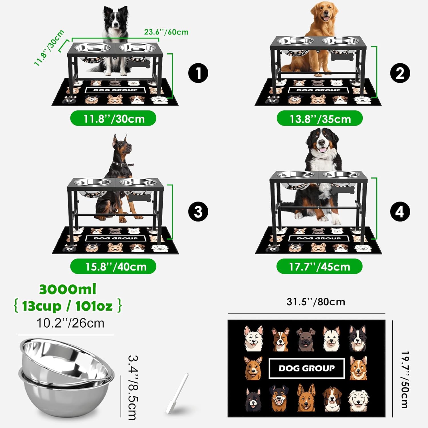 SHAINFUN Elevated Dog Bowls with Mat for Large & Extra Large Dogs, Raised Dog Bowl Stand with 2 Stainless Steel Bowls, Tall Dogs Food Water Bowl Holder