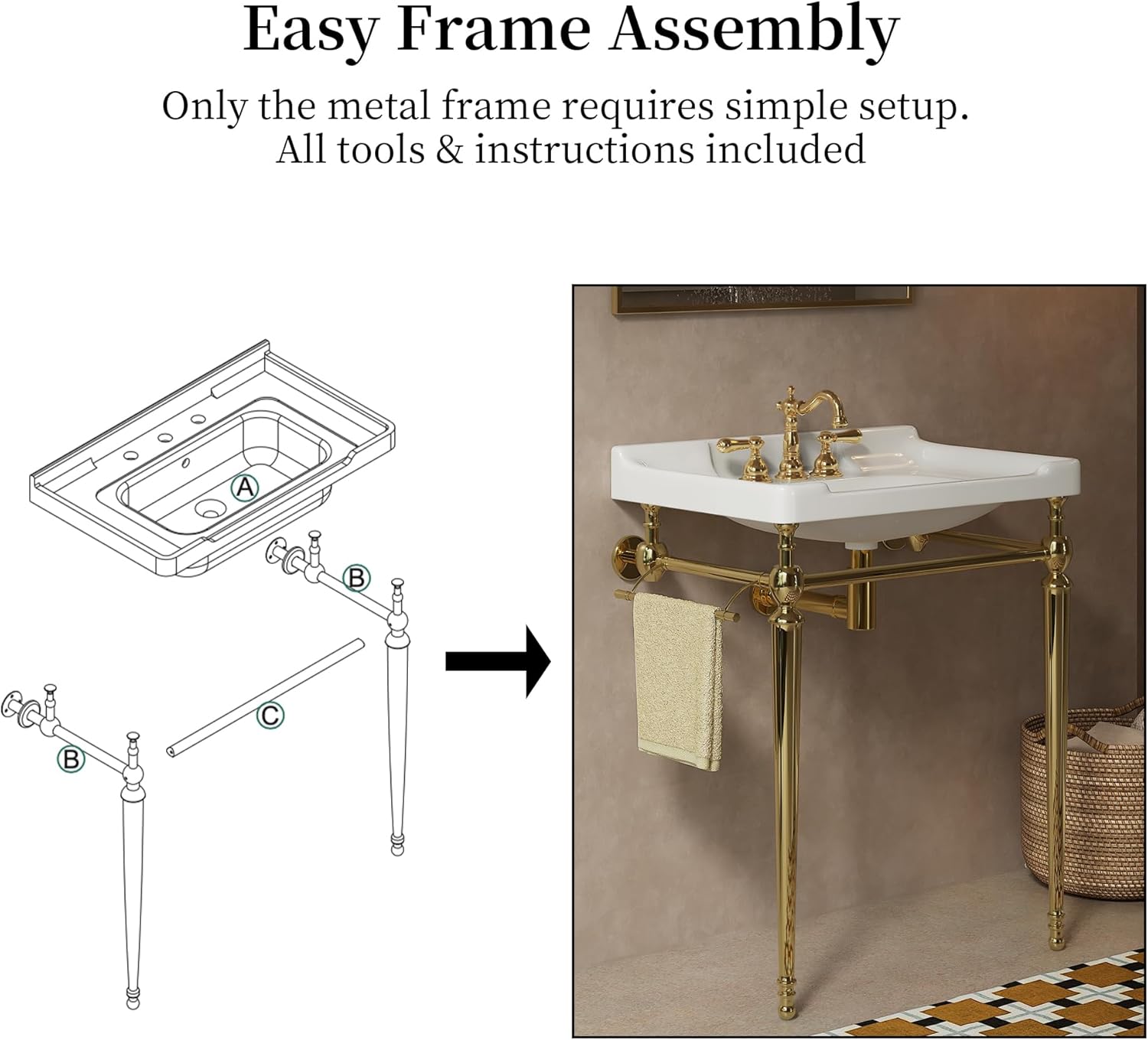 | Color | White Basin + Gold Legs |